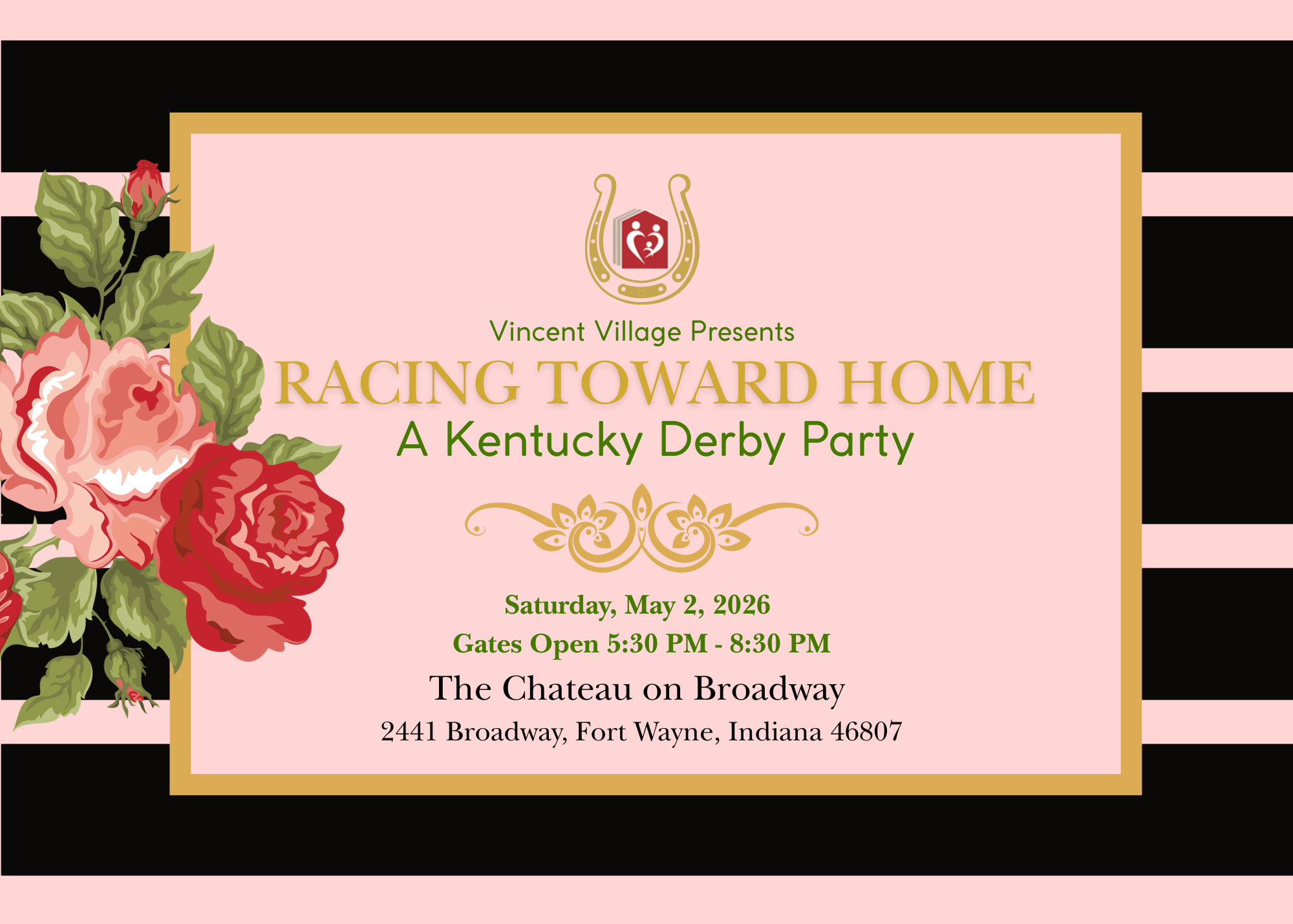 Racing Toward Home is a Kentucky Derby themed party benefiting Vincent Village and the families we serve. Join us for an evening of live music, great food, festive contests, and community as we celebrate in Derby style, all while supporting families on their journey to stable housing and self sufficiency. Come dressed to impress, enjoy the excitement of the race, and be part of something meaningful.